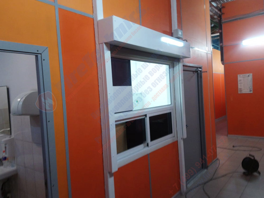 При получении сигнала «Пожар» от пожарной сигнализации активируется система управления, которая приводит в движение механизм опускания защитного экрана. Он полностью перекрывает проём, блокируя дальнейшее распространение огня, дыма, что обеспечивает безопасную эвакуацию людей в установленные законом сроки.